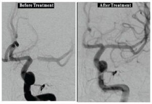 In this situation by Interventional Neuroradiology techniques BLOCKAGE can be opened and Normal blood flow to brain will be restored .